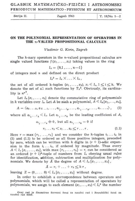 Call for Applications 2017 Members of the Croatian academic community who are working in logic in any of its aspects (philosophy, mathematics, computer science, artificial intelligence, linguistics, cognitive science, etc.) are invited to apply for the Juraj Dragišić / Georgius Benignus Prize in logic for 2017. 1) We invite contenders to submit an unpublished paper in logic written in English between 10 and 30 pages long. 2) Contenders should be affiliated to a Croatian academic institution (university, public research institute, the Croatian Academy of Sciences and Arts). There are no restrictions regarding age, sex, or nationality. 3) The award-winning paper will be published in the highly ranked journal Logica Universalis (Springer, Birkhäuser). The paper will be presented at the UNILOG'2018 congress, 16-26 June, in Vichy, France. Travel costs will be covered by the Croatian organizers, while the accommodation and congress fee will be provided by UNILOG. This support is awarded to the author or one of the co-authors of the winning paper. 4) The winner(s) will receive a monograph on Juraj Dragišić / Georgius Benignus (c. 1445-1520) and selected papers by Croatian logicians Vladimir Devidé (1925–2010) and Vladimir G. Kirin (1928–2000).